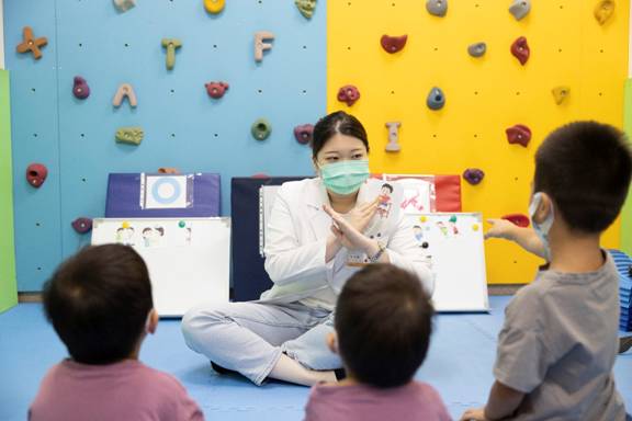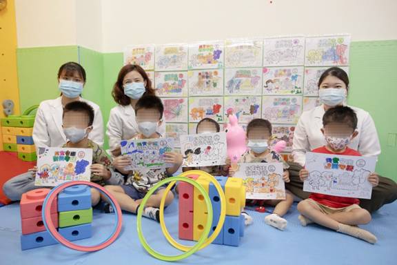 宏仁醫院復健科組長林育萱指出,早療孩子在小小年紀就常進出醫院,因此設計遊戲,由語言治療師協助孩子分辨在醫院可以做、不能做的事,寓教於樂,從小建立病安觀念,在快樂氛圍學習如何保護自己。