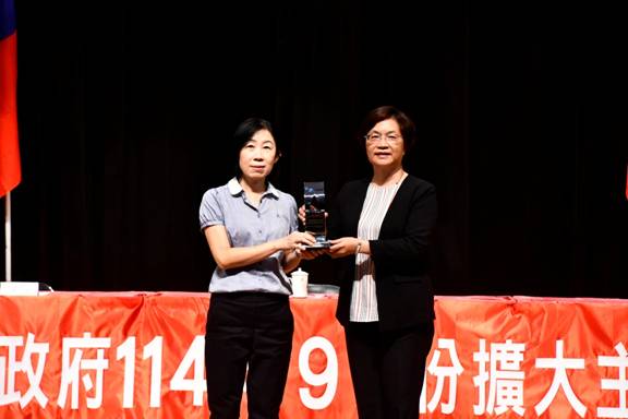 彰化縣政府近年積極推動公共建設與文化創意計畫,三大亮點工程在國內外嶄露頭角,接連榮獲多項專業設計大獎肯定,為縣政建設再添榮耀,城觀處王瑩琦處長擴大主管會議中陳獎給王惠美縣長,共享殊榮。