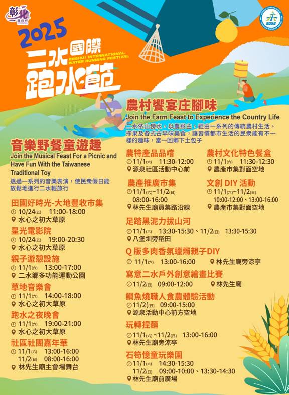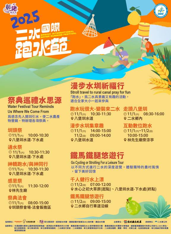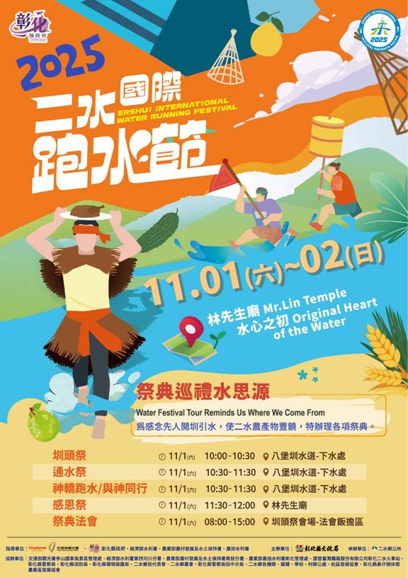 全台特有水圳節慶活動「2025二水國際跑水節」,將於11月1、2日在二水鄉盛大登場!