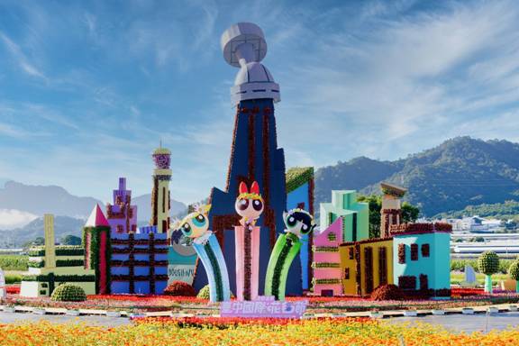 史上最大主花毯亮相! 飛天小女警主題裝置與限定主題館領航花海奇幻冒險