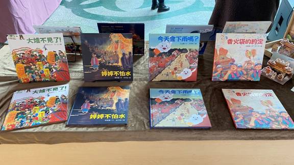 王縣長指出,繪本邀請彰化在地作家、繪者共同創作,4本繪本分別由作家陳育萱、施養慧、黃祿怡、余益興老師撰寫;插畫家吳欣芸、林一先、知亞、許家畇老師繪製。第一本《婷婷不怕水》,以「孩子克服恐懼」為故事主軸,傳達「彰化南瑤宮笨港進香」背後的信念與精神;第二本《香火袋的約定》描述兩位孩子之間跨越隔閡的友情,探討「社頭枋橋頭七十二庄迓媽祖」凝聚不同族群的歷史意義;第三本《大爐不見了!》,以充滿魔法的友情故事,展現「彰化新港十八庄送大爐」文化活潑的一面;第四本《今天會下雨嗎?》,則以雲朵的擬人視角,帶領讀者探索「同安寮十二庄請媽祖」的歷史淵源。