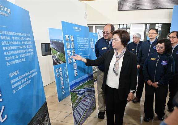 王縣長指出,田中是雙樞紐中的彰南樞紐,田中高鐵站附近剛完工的彰化國際展覽中心,是今年台灣設計展「彰化力」產業展的主展館,呈現彰化產業聚落的韌性、協作與創新。經過這次展覽,爾後彰化國際展覽中心將成為台灣會展新據點!此外,縣府團隊也在田中高鐵車站特定區,前瞻布局「樂齡健康產業園區」,以創造樂齡共好、推動高齡產業創新服務為目標,現在正在招商中,期盼引進優質企業,打造彰化下一個產業新亮點。