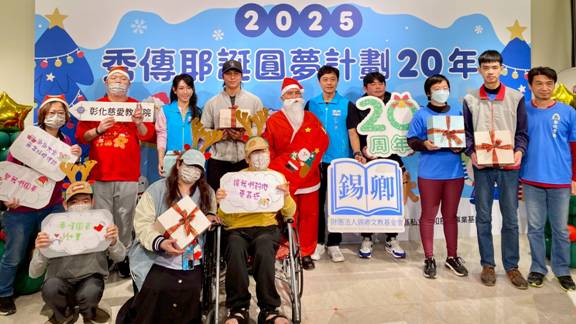 秀傳醫療體系自2006年發起「秀傳耶誕圓夢計劃」,今年邁入第20年。舉辦圓夢送禮物活動及「20週年特展」,回顧歷年成果與公益足跡。今年在社會大眾及企業團體支持下,成功點亮1,220份耶誕心願,為22家受贈單位弱勢與身障朋友帶來溫暖。台鋼雄鷹球星劉時豪和樂天桃猿投手呂詠臻特別出席力挺,向捐贈者致謝並與孩子互動,一同見證愛心延續。