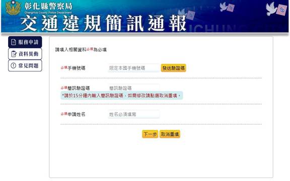 車主只要至彰化縣警察局全球資訊網,點選「主題宣導」專區中的「交通違規簡訊通報申請」,即可透過手機號碼驗證或掃描