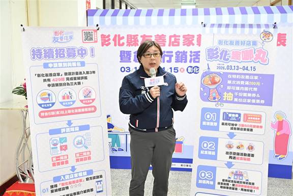 經濟暨綠能發展處長張寒青表示,「彰化友善店家」目前429家已有134家通過9項標準,晉升為三星認證店家,其中語言友善項目要求提供外文服務,讓外國旅客也有賓至如歸的溫暖。去(114)年配合台灣設計展,共輔導101家友善店家進行店面改造,民眾到訪會發現店家整個煥然一新,歡迎大家前往友善店家消費。