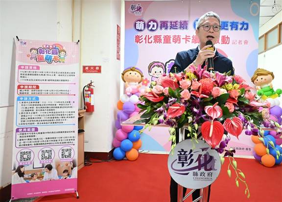 114年5月彰化縣政府推出全國首創的童萌卡,大獲好評。114年共計受理核發2萬1,076張童萌卡,核銷補助金額迄今約2億1,000萬元,民眾消費使用率高達98%。由民政處長劉玉平代表彰化縣長王惠美與會,展現縣府以實際行動支持青年家庭的決心。